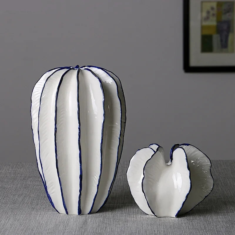 Inspired by the organic forms of ocean corals, the Coraline Vase is a modern statement piece crafted from high-quality ceramic and porcelain. With its flowing silhouette and hand-painted navy blue contours, this vase adds elegance and depth to any interior. Available in Small or Large, it's perfect as a solo piece or part of a curated set.